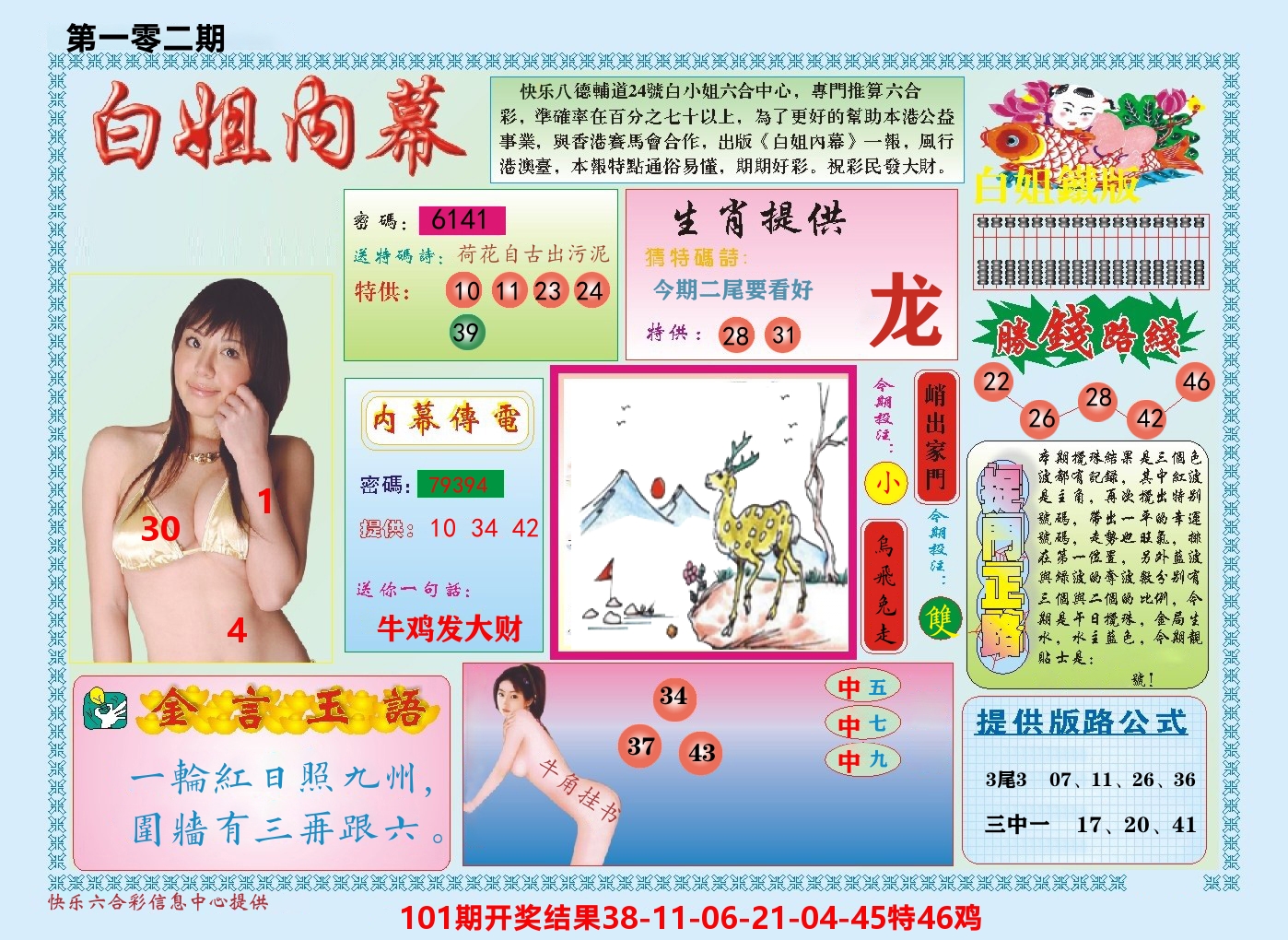 101期七肖【马牛兔鸡虎猴狗】开 46鸡 准