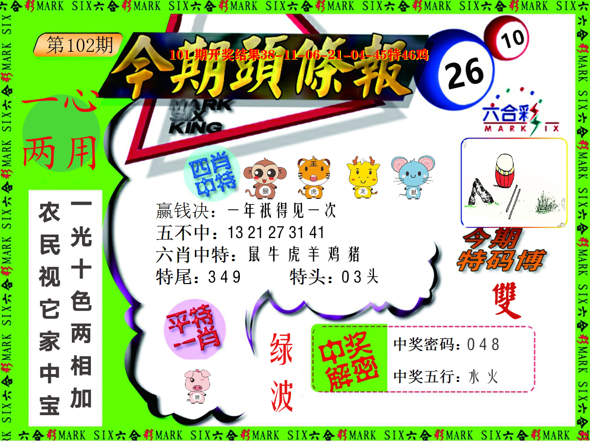 102期⑦肖【马牛鸡兔龙蛇鼠】开 ?? 准