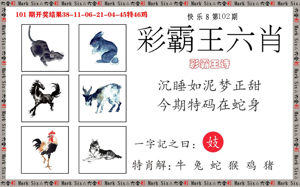 101期九肖【马牛兔鸡虎猴狗羊蛇】开 46鸡 准